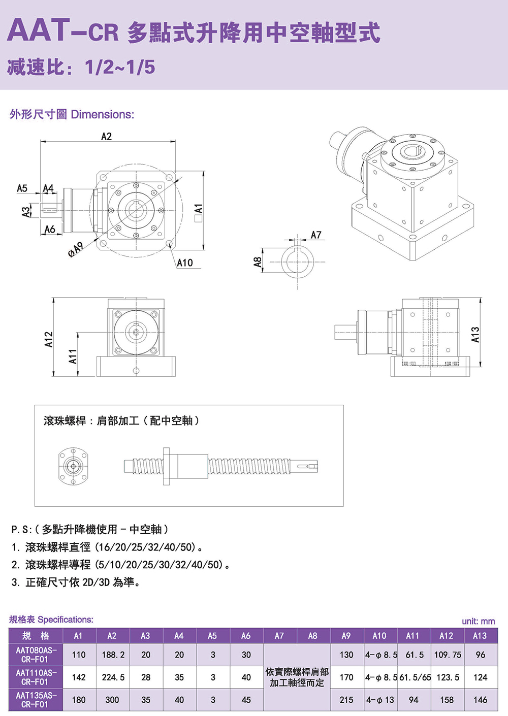多樣化:輸出軸種類多樣化,有單出力軸型、雙出力軸型、中空軸型、中空法蘭型、中空軸錐形緊迫性、螺桿直線型、螺牙直線型。