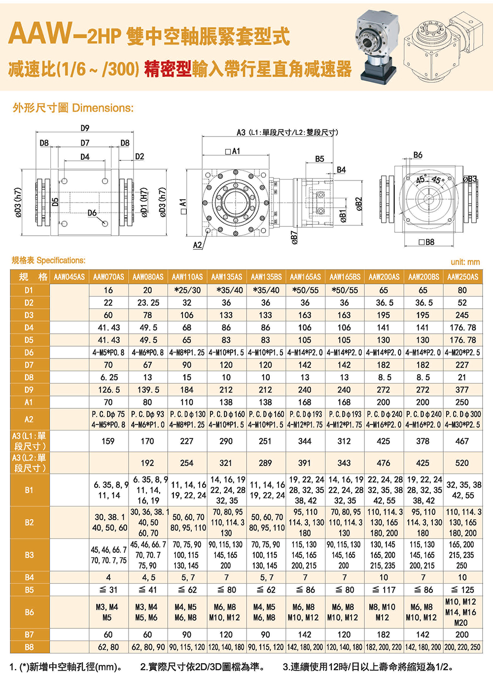 多樣化:輸出軸種類多樣化,有單出力軸型、雙出力軸型、中空軸型、中空法蘭型、中空軸錐形緊迫性、螺桿直線型、螺牙直線型。