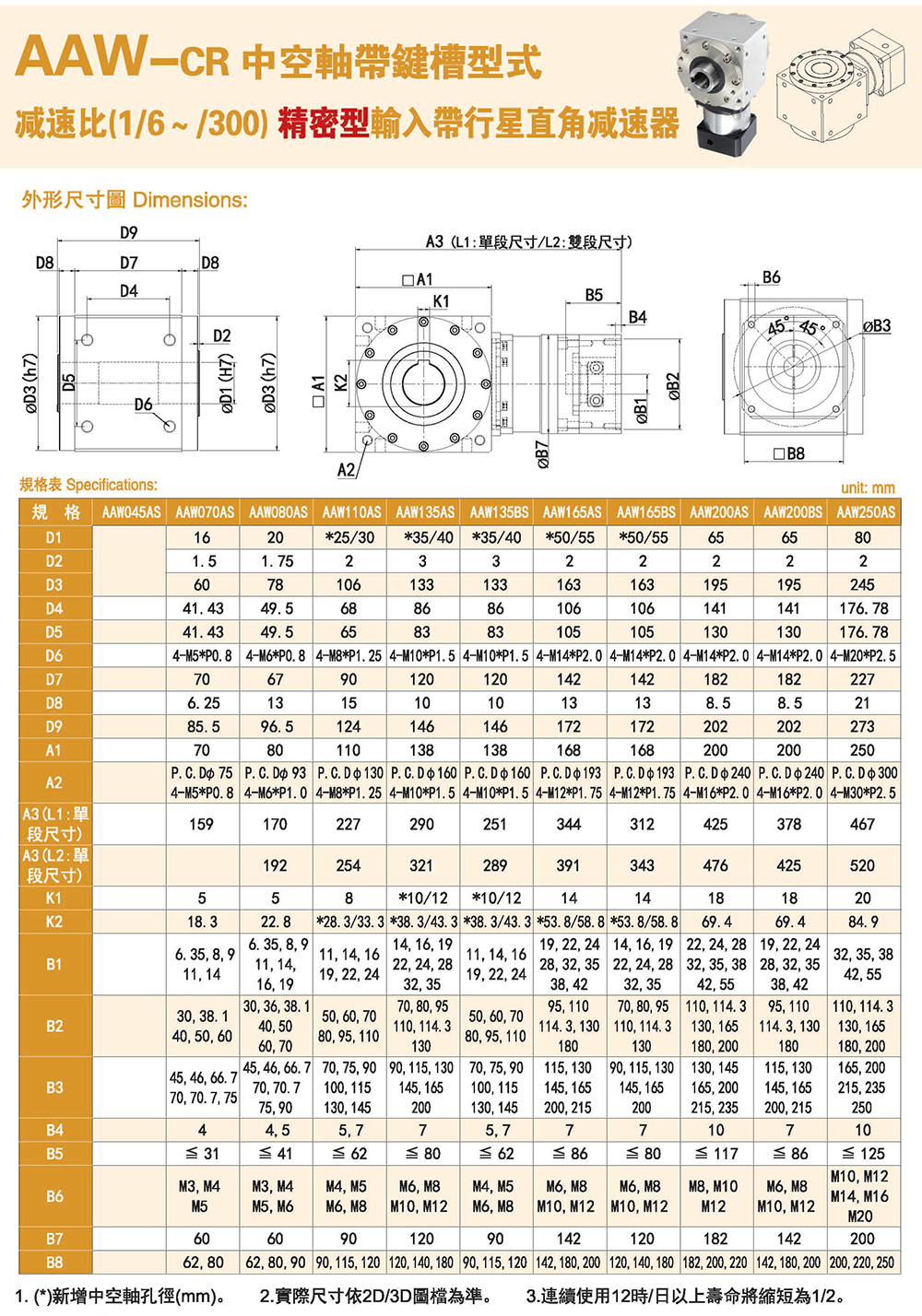 多樣化:輸出軸種類多樣化,有單出力軸型、雙出力軸型、中空軸型、中空法蘭型、中空軸錐形緊迫性、螺桿直線型、螺牙直線型。