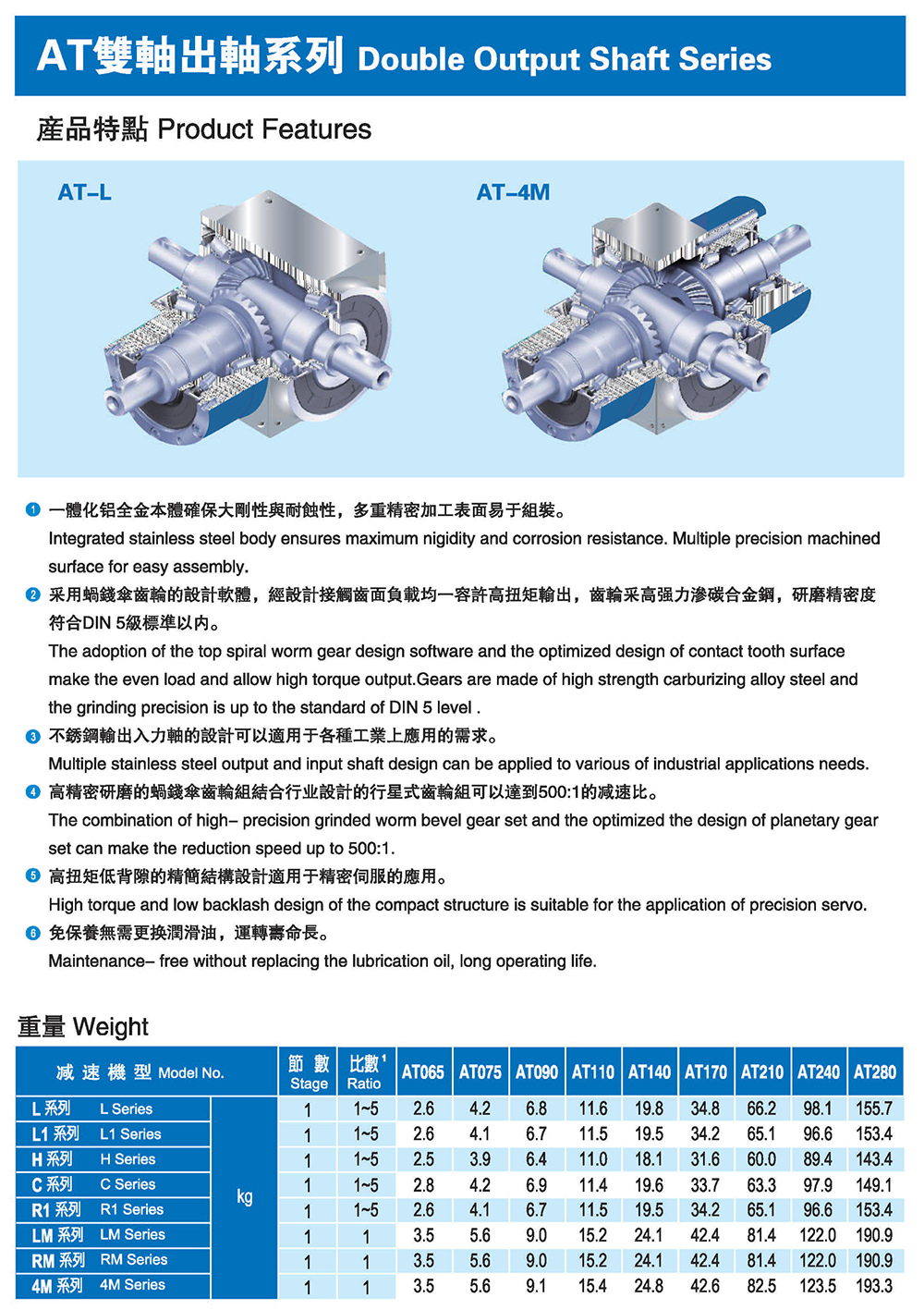 減速比:單段1:3~1:10雙段:1:12~12:100