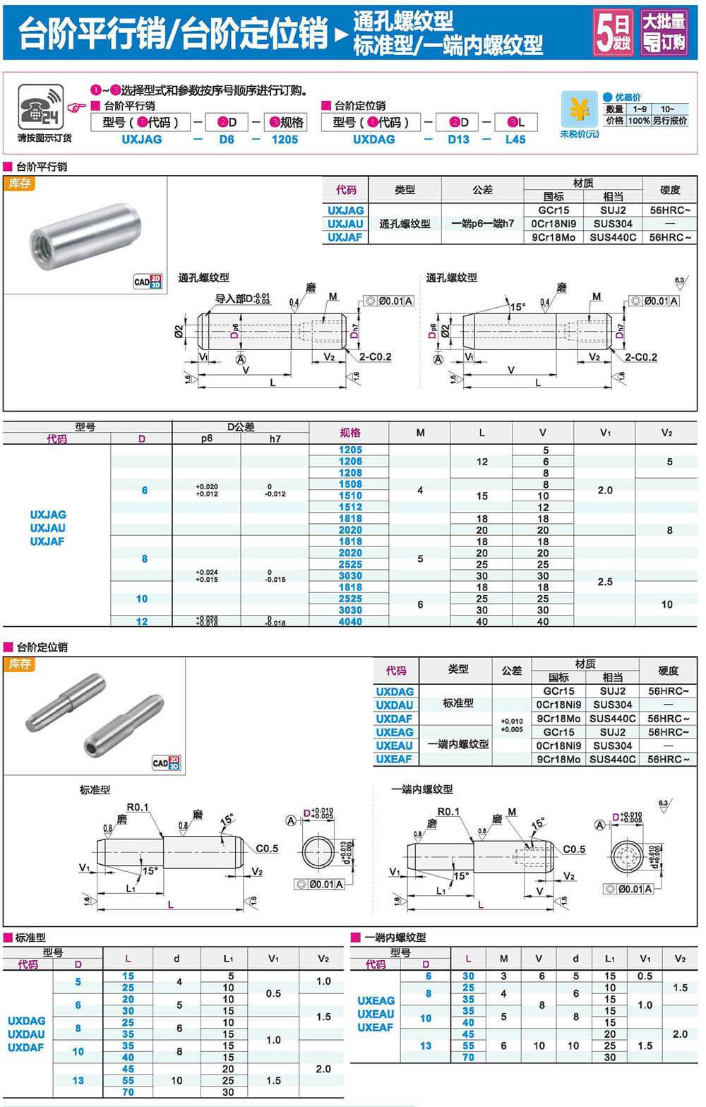 臺階平行銷/定位銷