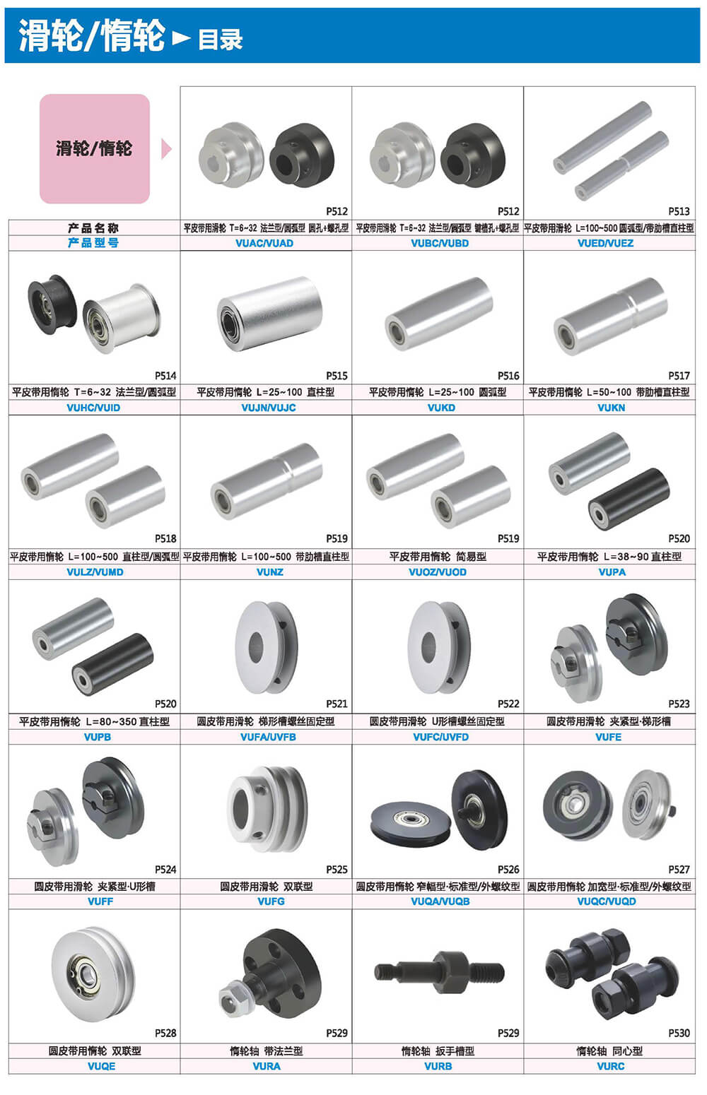 滑輪惰輪在機(jī)械設(shè)備中與平皮帶圓皮帶配合使用,起到動(dòng)力傳遞、輸出、過渡、皮帶張緊用等,用于皮帶張緊時(shí)也可稱作張緊輪