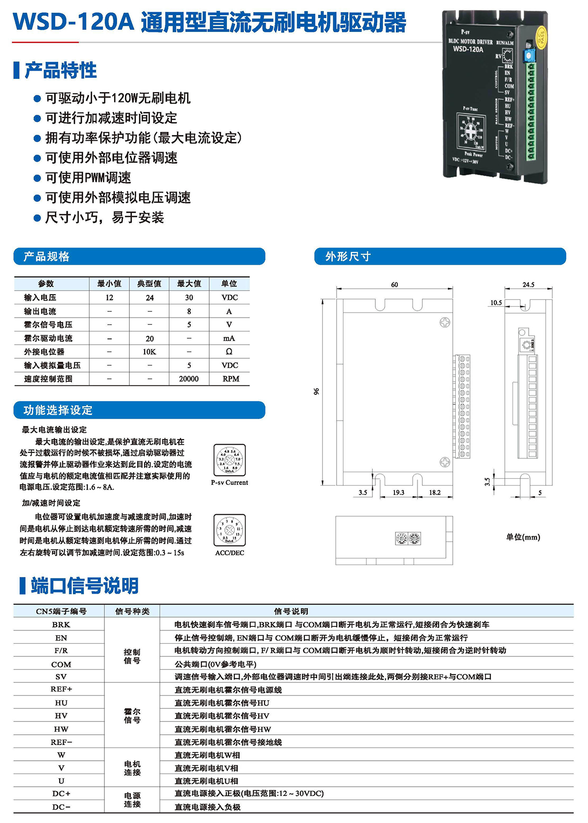●可驅(qū)動(dòng)小于70W無刷電機(jī)