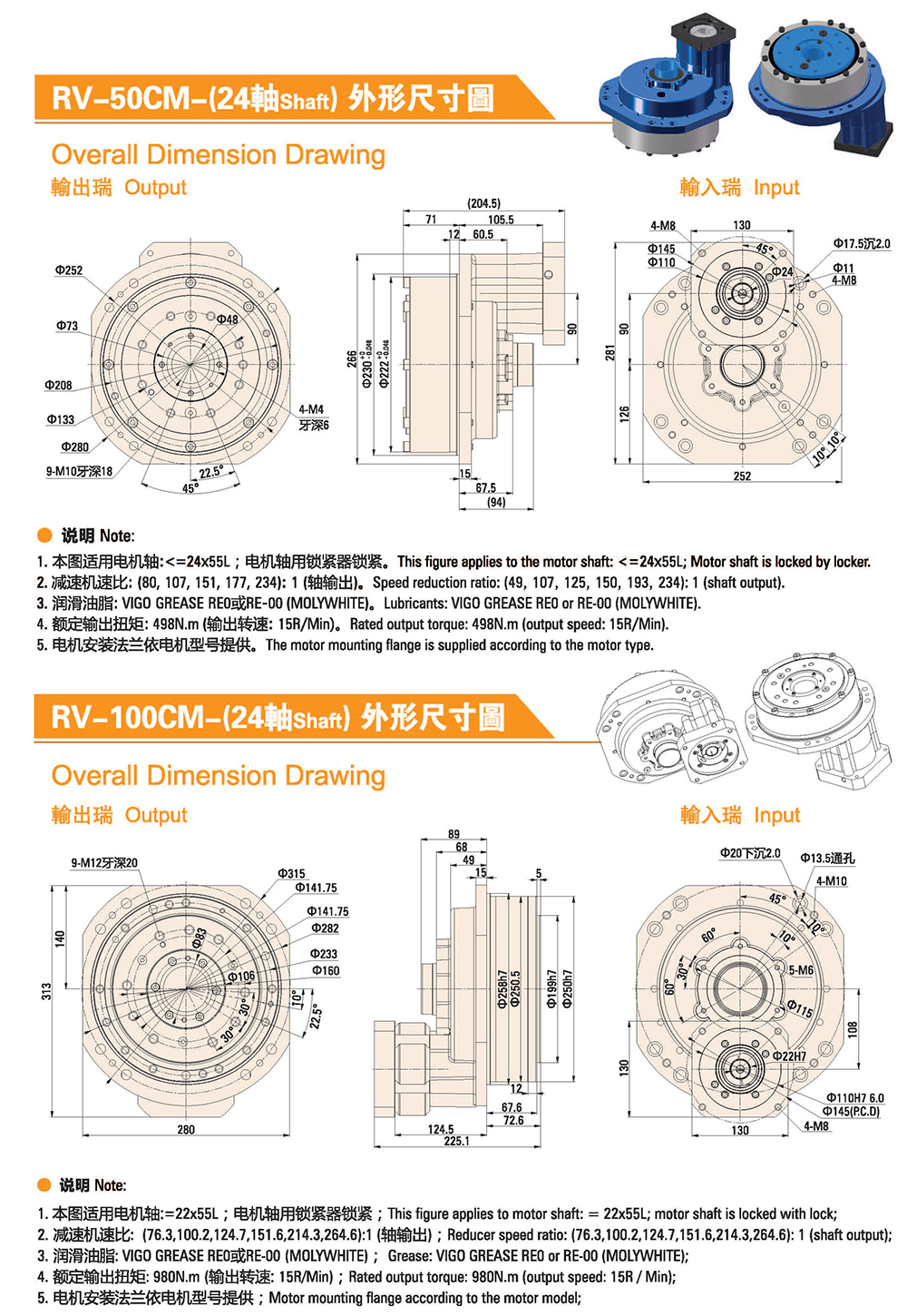 輸出軸形式新增了法蘭盤面輸出,底座安裝,可用于大負載旋轉(zhuǎn)平臺應用使用。