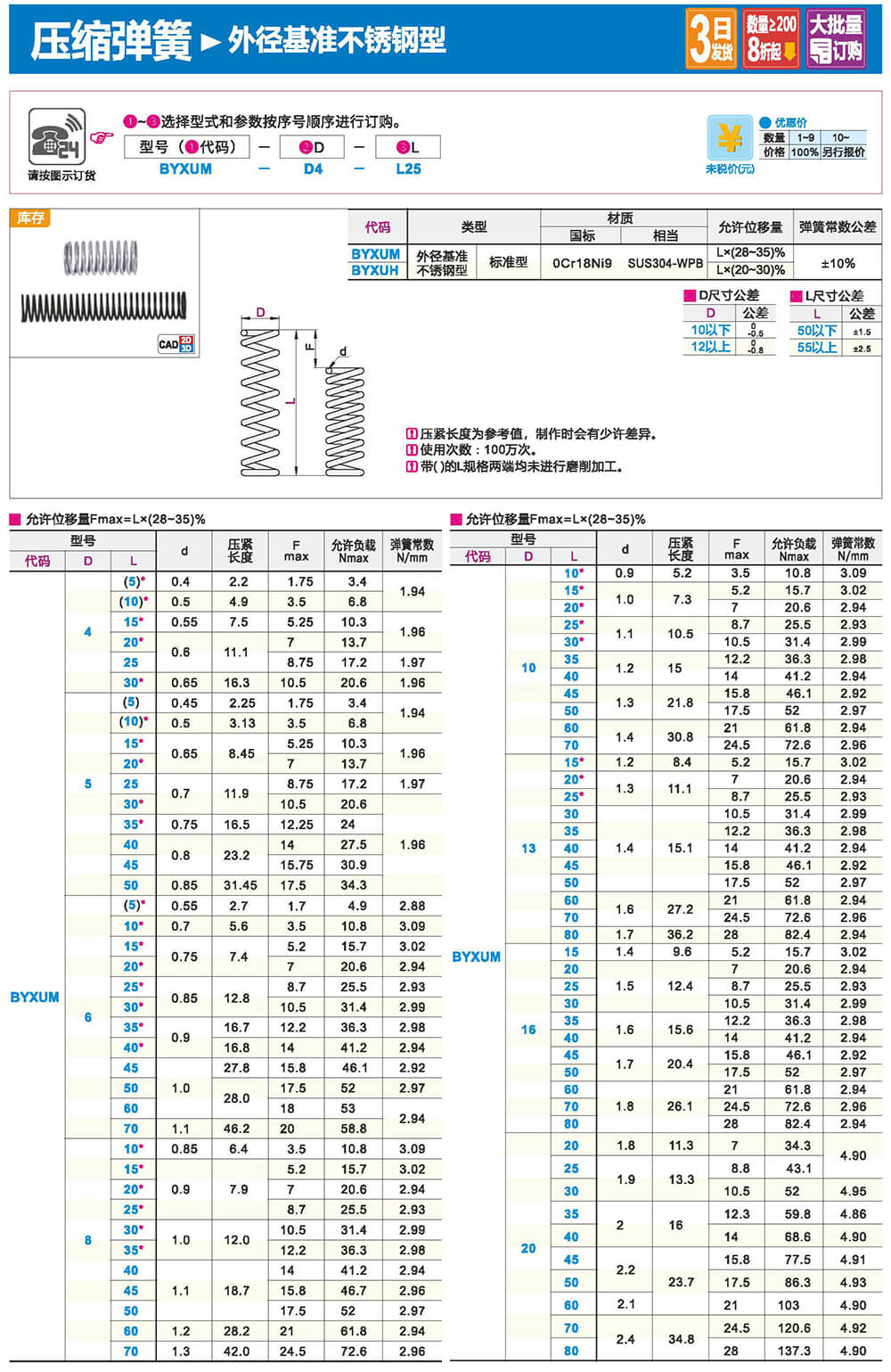 1.圓形截面壓縮彈簧:是承受軸向壓力的螺旋彈簧,它所用的材料截面為圓形。一般為等節(jié)距的,壓縮彈簧的圈與圈之間有一定間隙,當(dāng)受到外載荷時(shí)彈簧會(huì)收縮變形。其剛度穩(wěn)定,結(jié)構(gòu)簡(jiǎn)單,制造方便,應(yīng)用較廣。