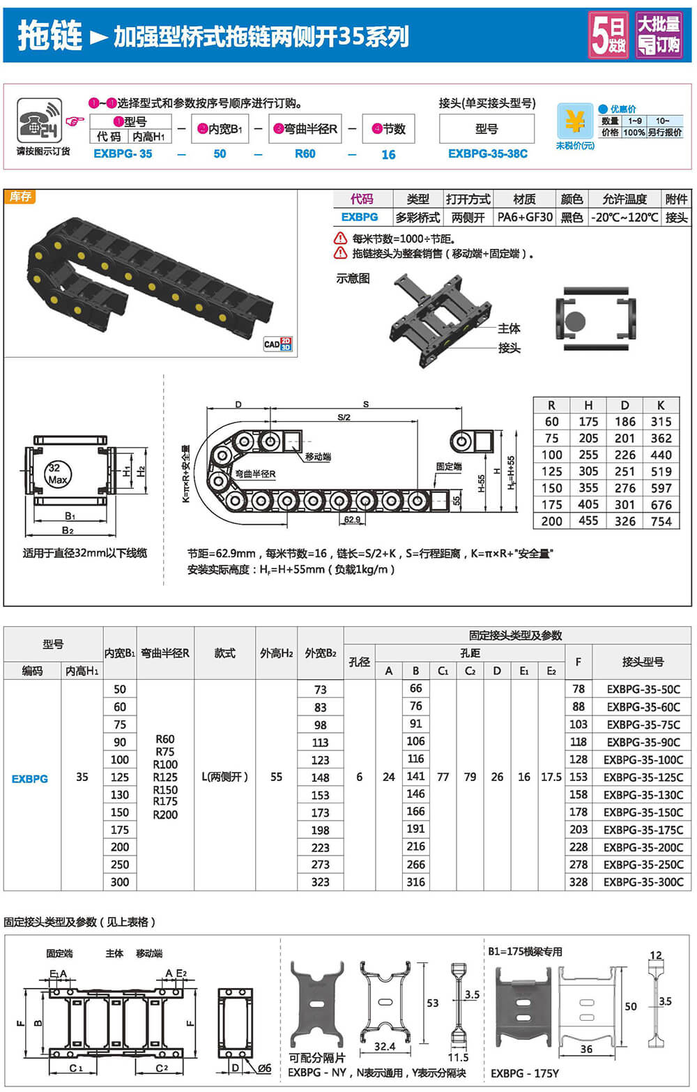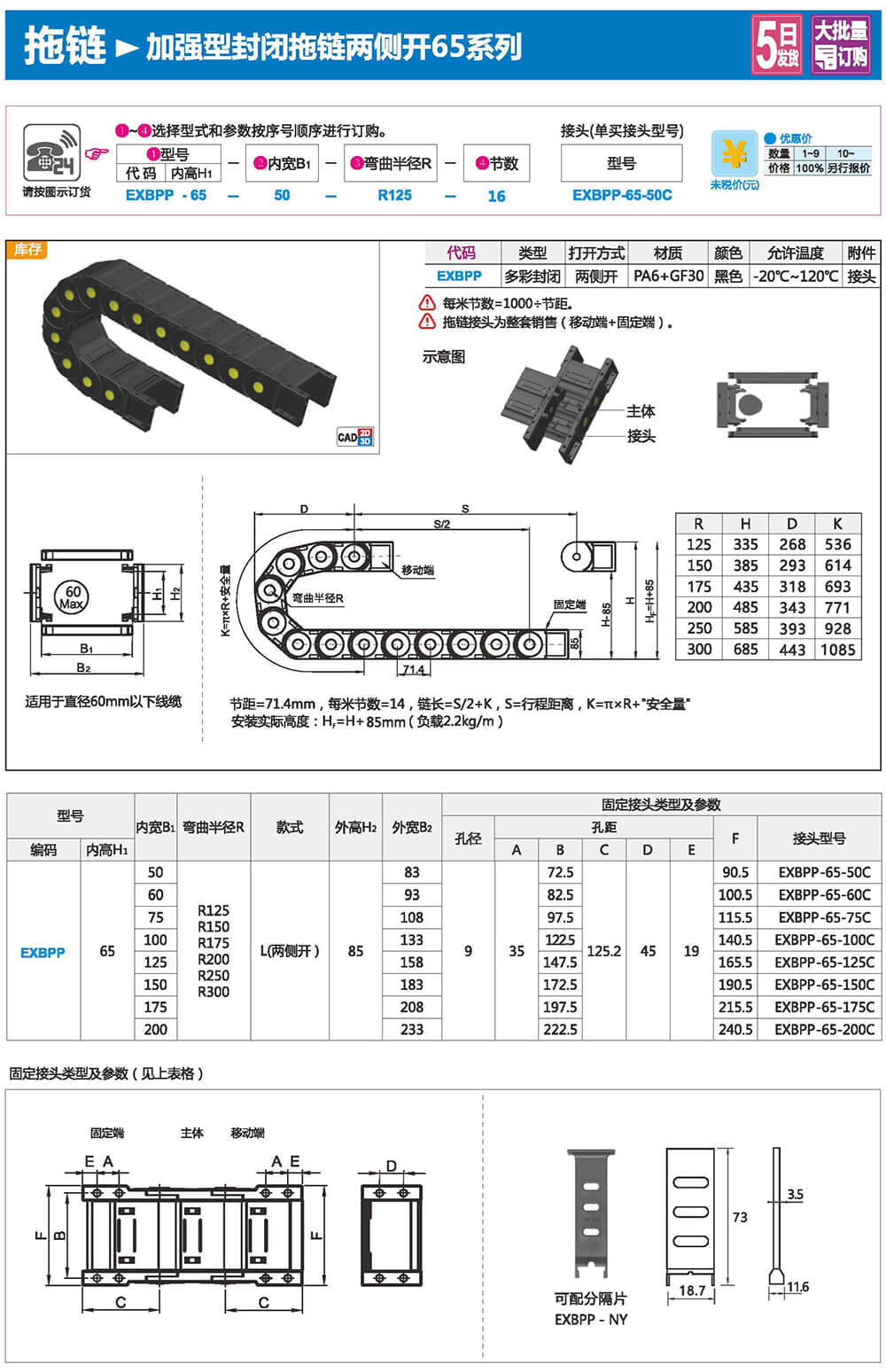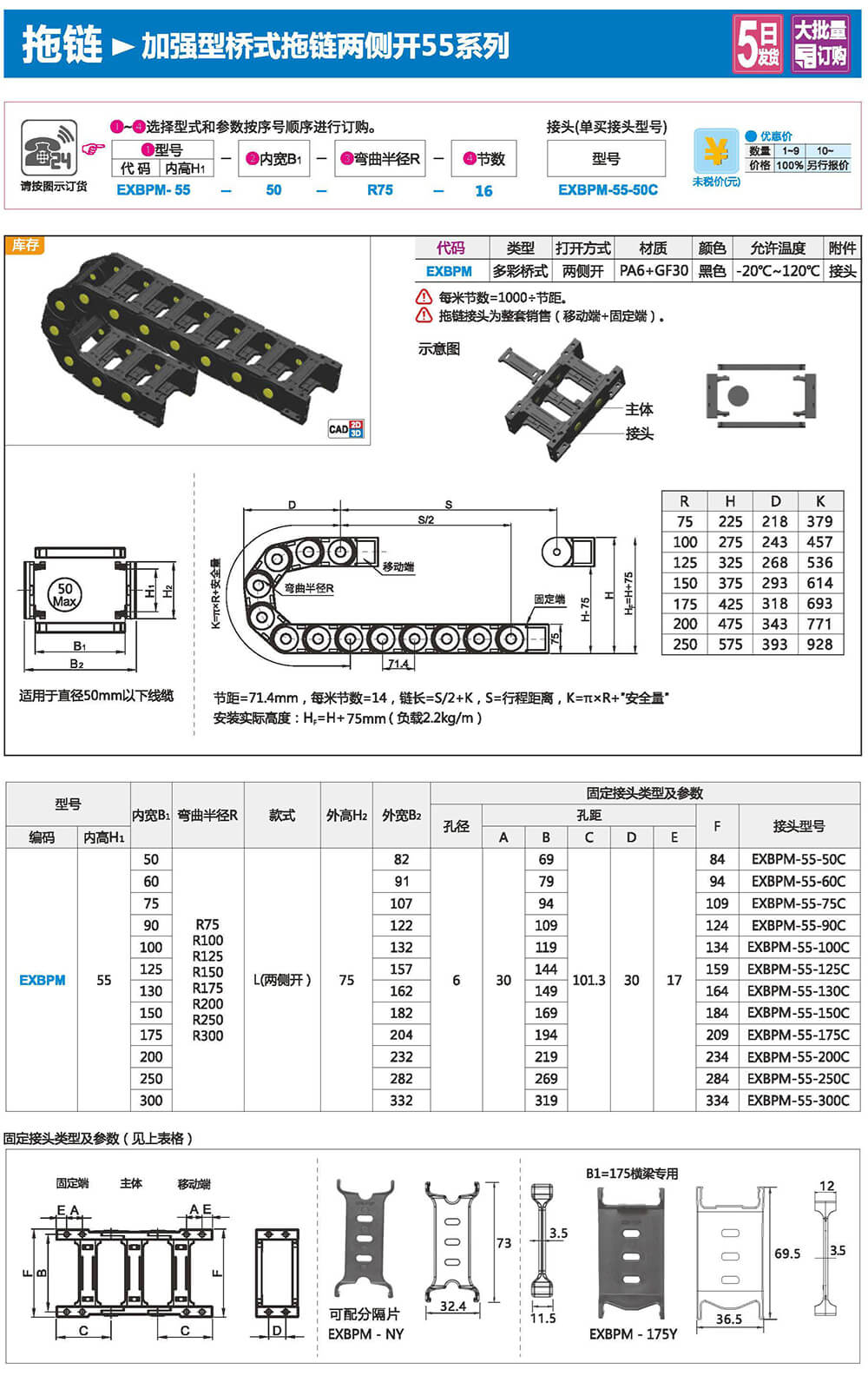 適合于使用在往復運動的場合,能夠?qū)?nèi)置的電纜、油管、氣管、水管等起到牽引和保護作用,拖鏈每節(jié)都能打開,便于安裝和維修。運動時噪音低、耐磨、可高速運動。拖鏈已被廣泛應用于數(shù)控機床.電子設備、石材機械、玻璃機械、門窗機械、注塑機、機械手、起重運輸設備、自動化倉庫等。