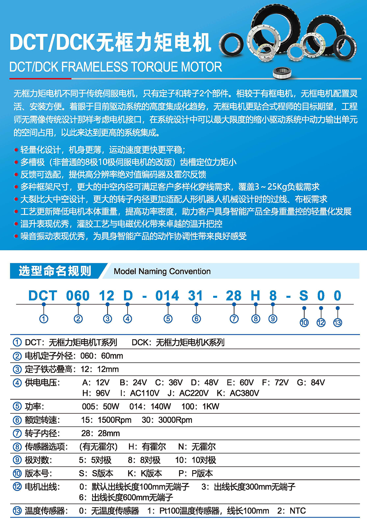 無框力矩電機不同于傳統(tǒng)同服電機,只有定子和轉(zhuǎn)子2個部件。相較于有框電機,無框電機配置靈 活、安裝方便。著眼于目前驅(qū)動系統(tǒng)的高度集成化趨勢,無框電機更貼合式程師的目標期望,工程 師無需像傳統(tǒng)設(shè)計那樣考慮電機接口,在系統(tǒng)設(shè)計中可以最大限度的縮小驅(qū)動系統(tǒng)中動力輸出單元 的空間占用,以此來達到更高的系統(tǒng)集成