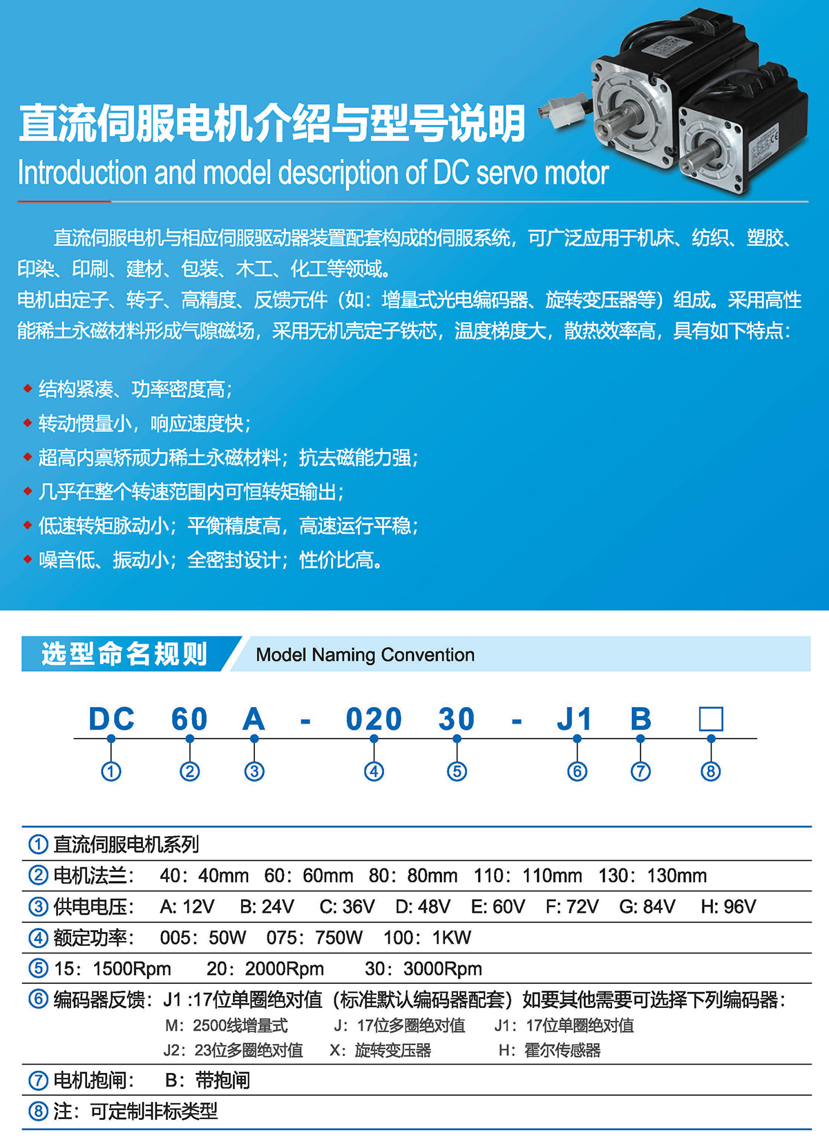 具備耐高溫、耐濕、防塵、高功率密度、大轉(zhuǎn)矩、調(diào)速性能好、節(jié)能環(huán)保、高可靠性和長壽命等特點。