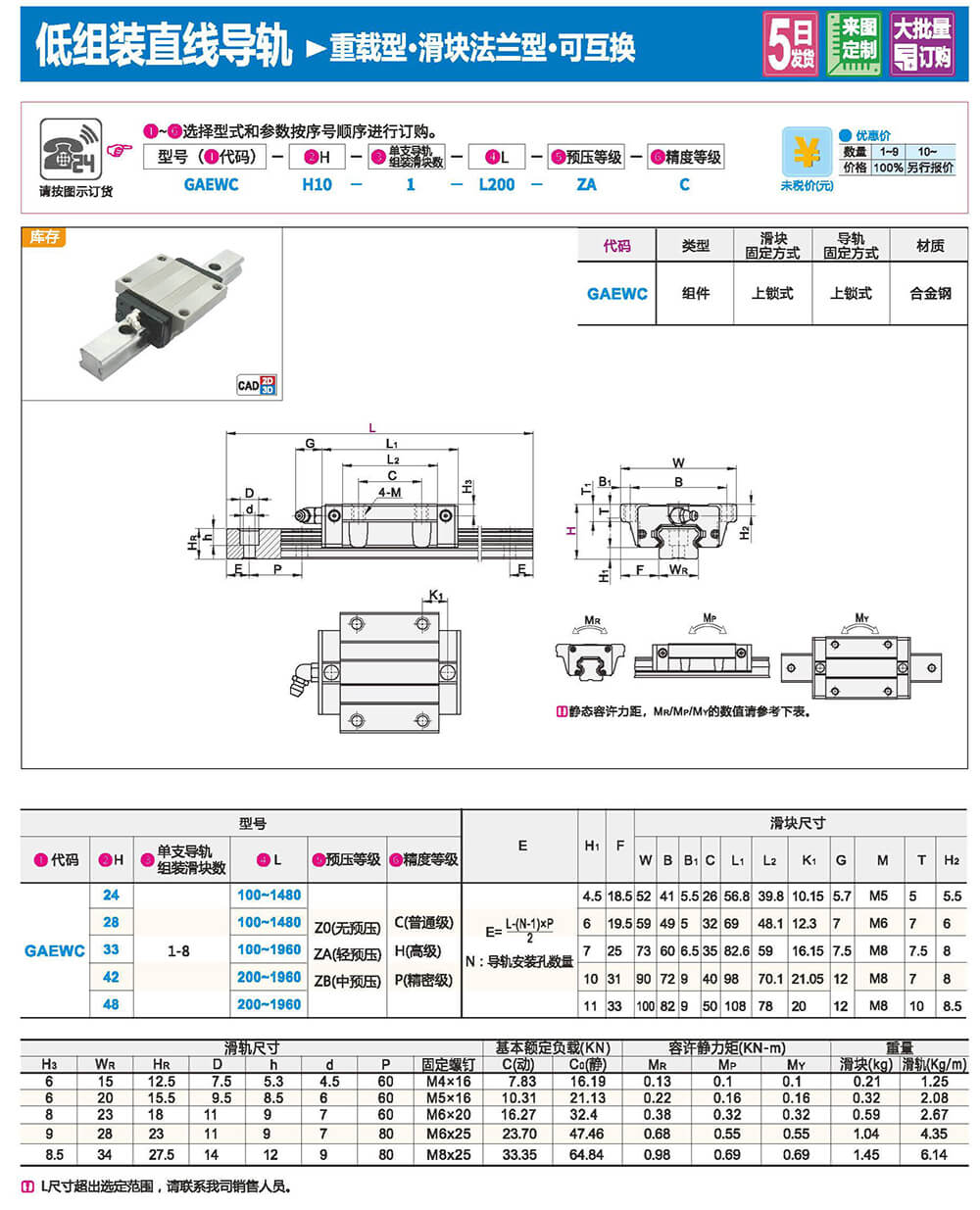 直線導(dǎo)軌由鋼珠在滑塊與滑軌之間作無(wú)限滾動(dòng)循環(huán)負(fù)載平臺(tái)能沿著滑軌輕易地以高精度做線性運(yùn)動(dòng)。與傳統(tǒng)的滑動(dòng)導(dǎo)引相比較滾動(dòng)引導(dǎo)的摩擦系數(shù)可降低至1/50,由于啟動(dòng)的摩擦力大大減少,相對(duì)的較少無(wú)效運(yùn)動(dòng)發(fā)生故而能輕易達(dá)到μum級(jí)進(jìn)給及定位。在加上滑塊與滑軌的束制單元設(shè)計(jì),使得線性導(dǎo)軌可同時(shí)承受上下左右等各個(gè)方向的負(fù)荷上述陳列特點(diǎn)并非傳統(tǒng)滑動(dòng)導(dǎo)引所能比擬因此機(jī)臺(tái)若能配合滾珠螺桿,使用線性導(dǎo)軌作導(dǎo)引必能大幅提高設(shè)備精度與機(jī)械效能。
