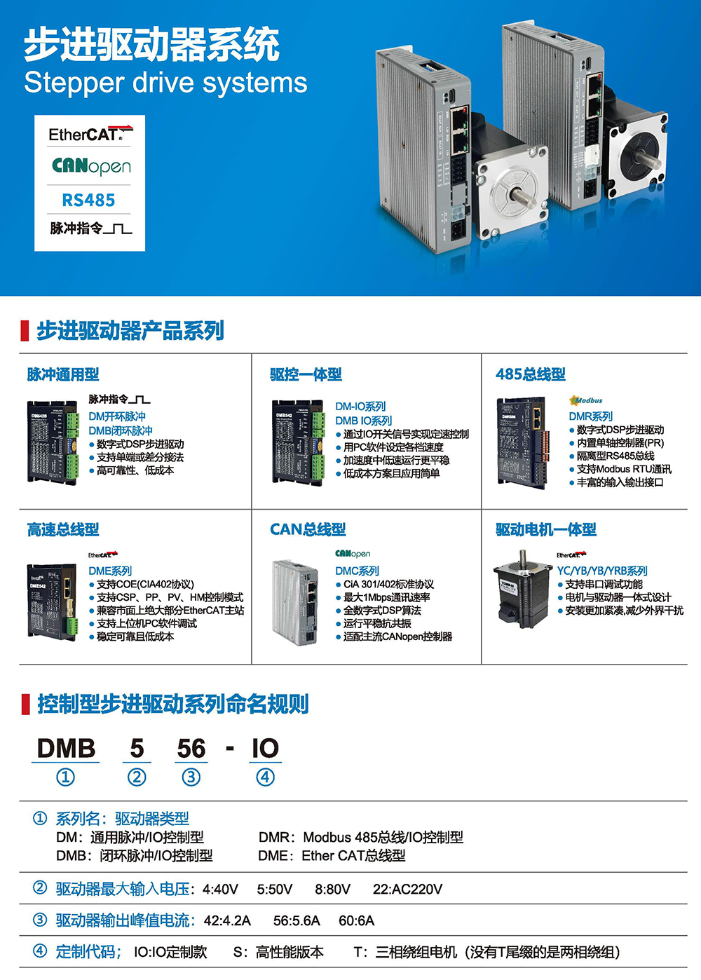 DMB系列是鋒樺傳動(dòng)技術(shù)有限公司推出的兩相數(shù)字式閉環(huán)步進(jìn)驅(qū)動(dòng)器,采用矢量控制技術(shù)、內(nèi)置微細(xì)分技術(shù)、自適應(yīng)濾波技術(shù),極大地優(yōu)化了步進(jìn)電機(jī)的性能,低中高速運(yùn)行都很平穩(wěn),噪音小,電機(jī)發(fā)熱低,其性價(jià)比極高,能夠滿足絕大多數(shù)場合的應(yīng)用需要。