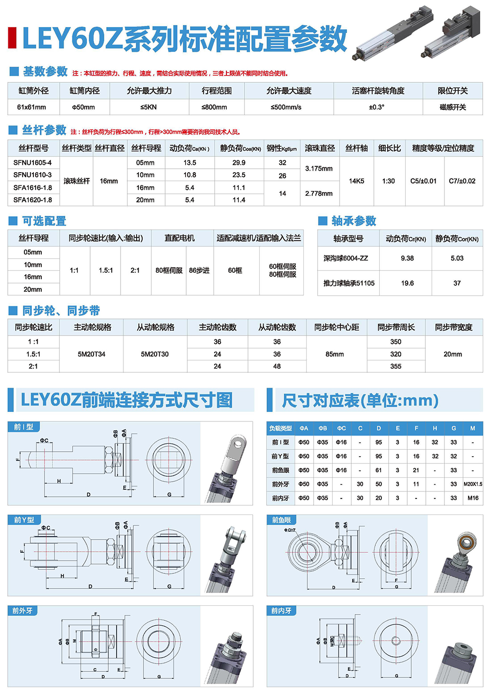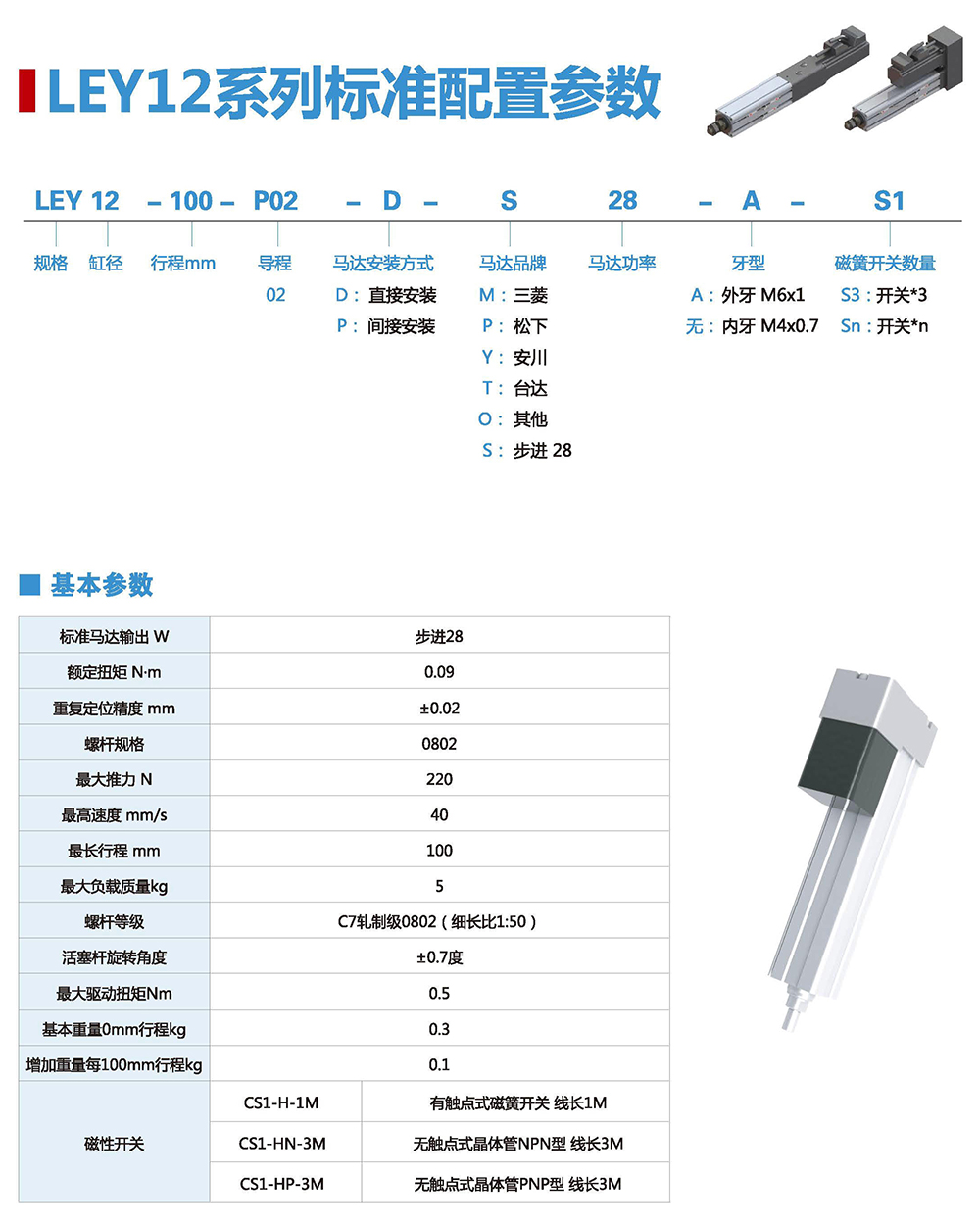 LEY伺服電動缸主要特性