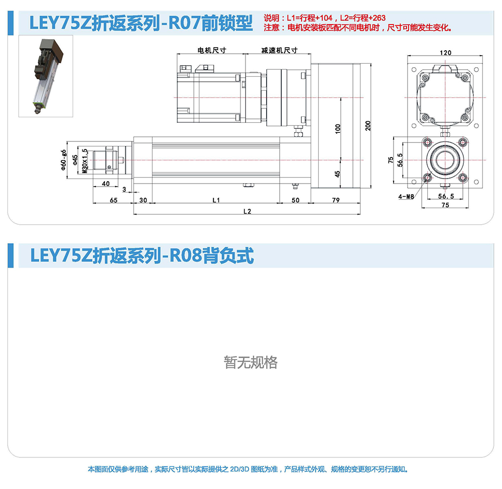 折返式電動缸由于整體長度短,適用于安裝位置比較小的場合。同時本方案選用的同步帶,具有強度高、間隙小壽命長的特點,使整個電動缸具有較高的控制性和控制精度。伺服電機與電動缸配合靈活,安裝容易,設定簡單,使用方便。