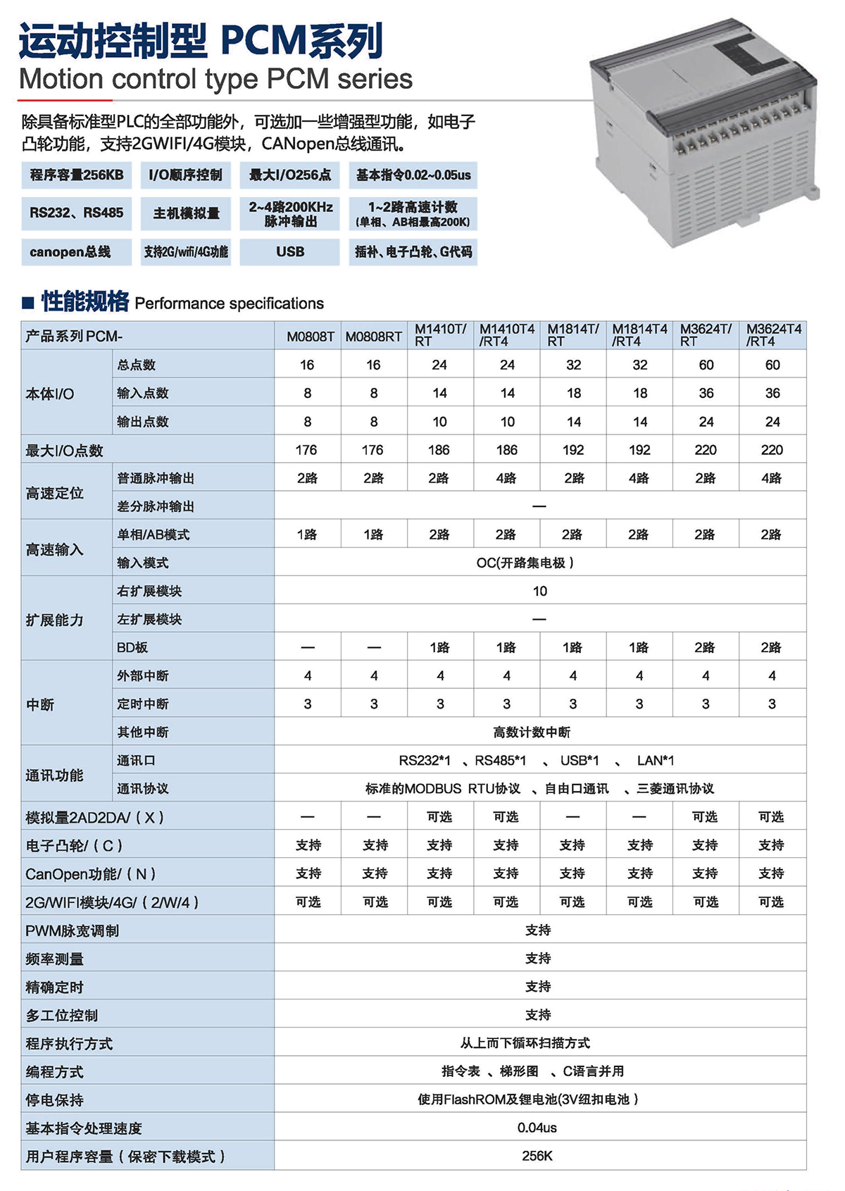 除具備標(biāo)準(zhǔn)型PLC的全部功能外,可選加一一些增強(qiáng)型功能,如電子 凸輪功能,支持2GWIFI/4G模塊, CANopen總線(xiàn)通訊。