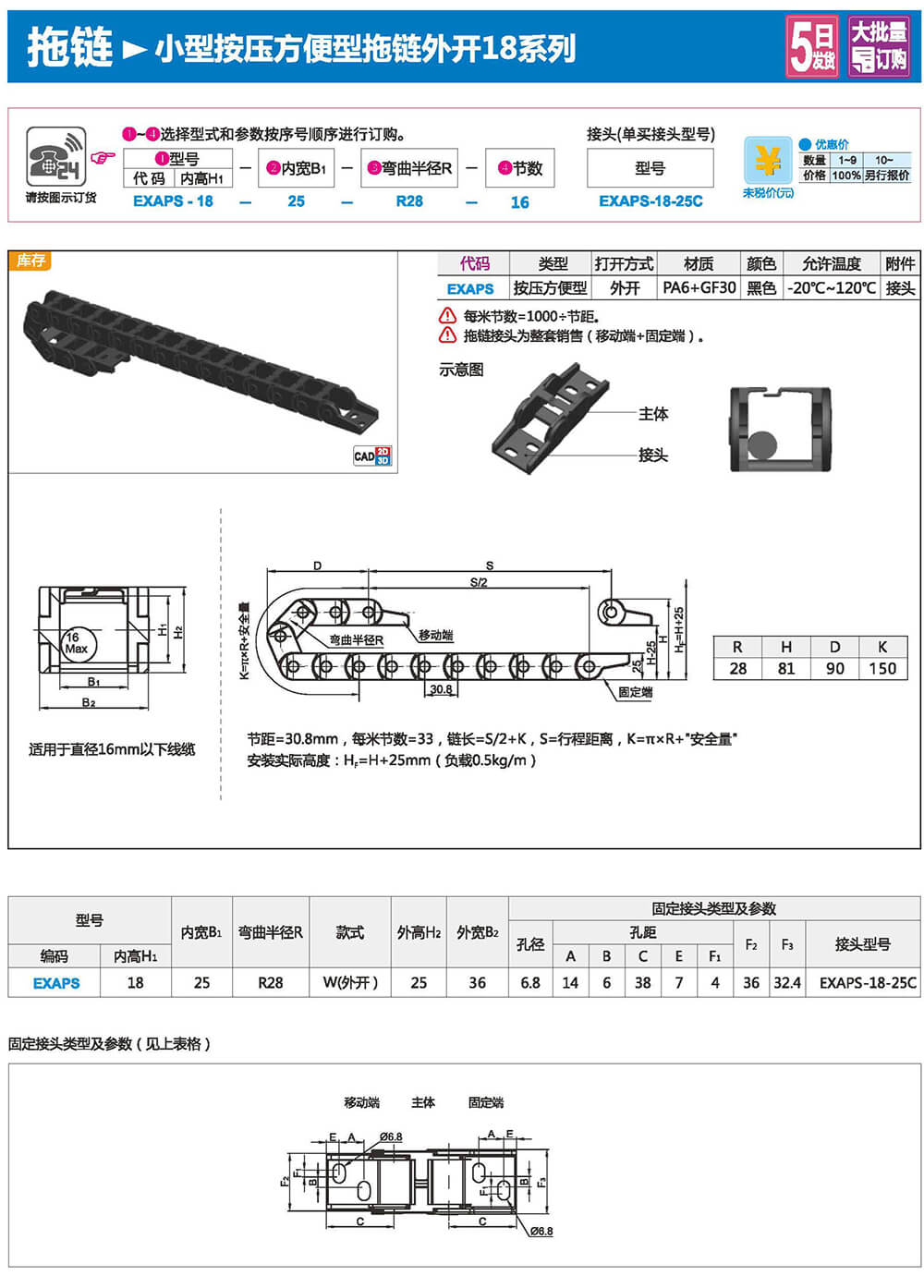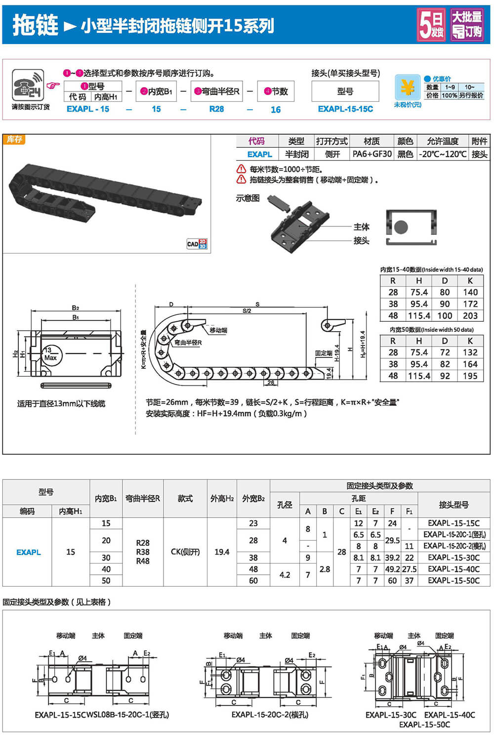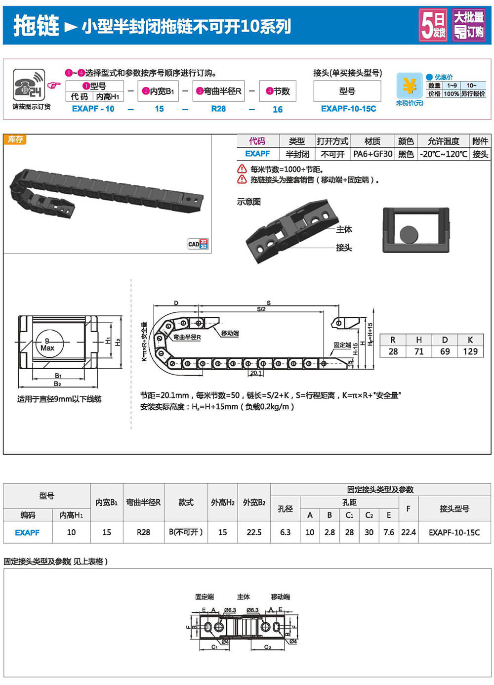 適合于使用在往復(fù)運(yùn)動的場合,能夠?qū)?nèi)置的電纜、油管、氣管、水管等起到牽引和保護(hù)作用,拖鏈每節(jié)都能打開,便于安裝和維修。運(yùn)動時(shí)噪音低、耐磨、可高速運(yùn)動。拖鏈已被廣泛應(yīng)用于數(shù)控機(jī)床.電子設(shè)備、石材機(jī)械、玻璃機(jī)械、門窗機(jī)械、注塑機(jī)、機(jī)械手、起重運(yùn)輸設(shè)備、自動化倉庫等。