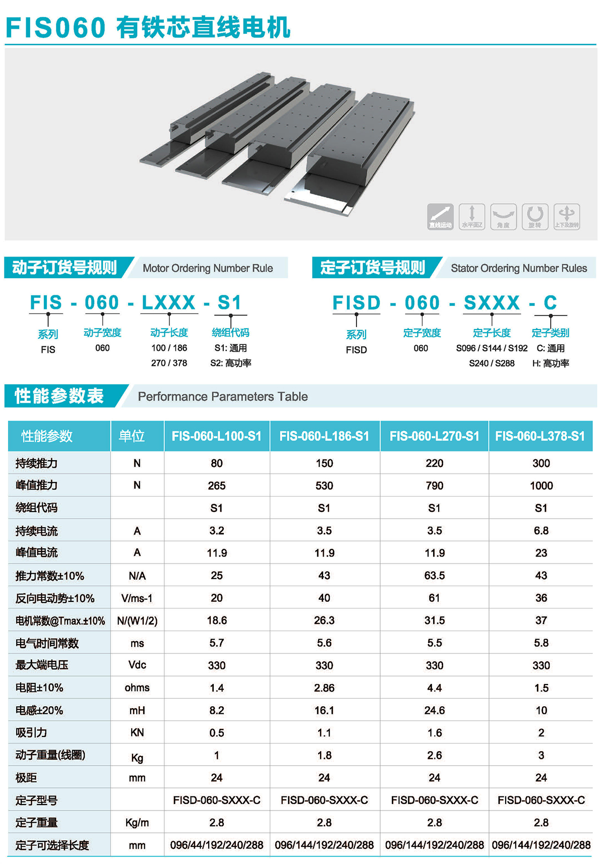 FIS系列有鐵芯電機(jī)提供了單位體積最大出力,采用了極佳的抗齒槽效應(yīng)的解決方案,最大限度的降低齒槽效應(yīng),他們外形尺寸小,吸力低,推力高,廣泛應(yīng)用于高精度高速度智能裝備領(lǐng)域。
